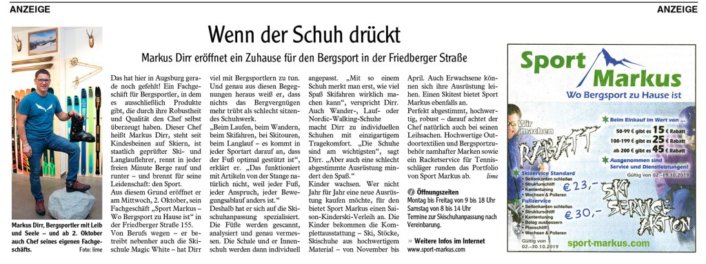 Keine Baustelle mehr . . . Auch am heiligen Sonntag ging es mit Einrichtungen und äußerem Erscheinungsbild weiter. Und die Augsburger Allgemeine würdigte in ihrer Samstagsausgabe unsere Arbeit durch die Veröffentlichung eines Artikels über Sport Markus, wie hier zu sehen!